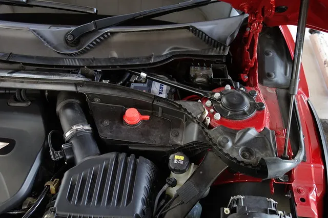 この車種でのバッテリー交換時にはたくさんの部品取り外しが必要。