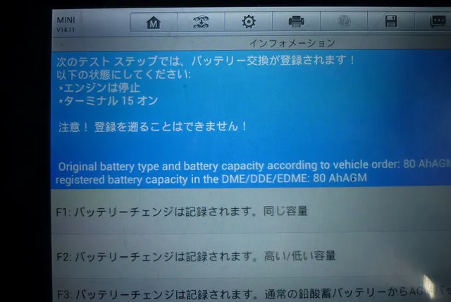 診断機にてバッテリーの交換登録が必要。