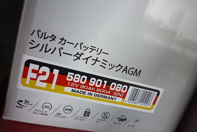 写真の物は、AGMタイプで容量は80Ah。