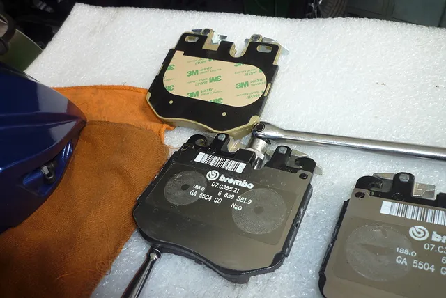 ブレーキパッドがピストンに両面テープで接着されているタイプがあり、