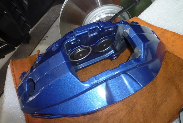 最近のBMW、MINIなどの対抗マルチピストンキャリパーでは、、