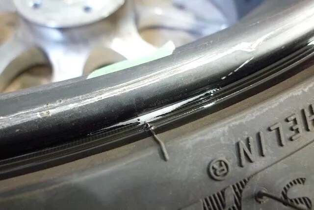 リム曲がりなどホイールが変形している場合・タイヤビード部に傷がある場合はもちろん、