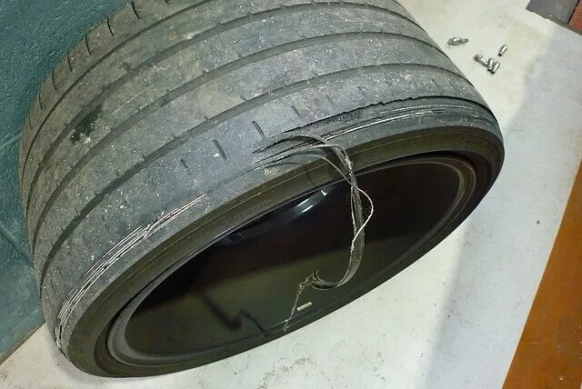 今回のパターンではタイヤが破損してしまい、フェンダーライニングなどに当たって傷をつけてしまった。