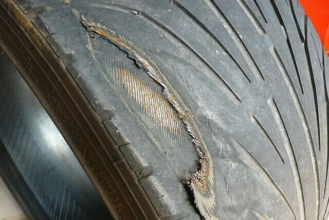 といった症状に気づきやすく、このようなひどい状態になる前に車を止めて確認ができる。