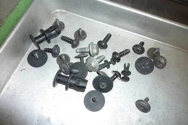 なぜか複数種類のボルトと複数種類のクリップが使用されており、