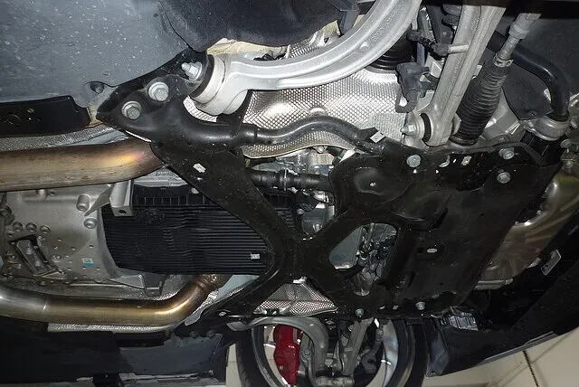 ステアリングギアボックスとフロントロアアームの固定も兼ねているので