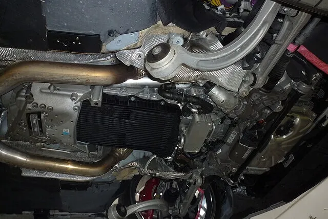 このアウディRS5の場合、ATFのオイルストレーナーは樹脂製のオイルパンに内蔵されており