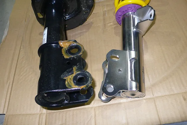 また、KW車高調のストラットではアップライト固定部のネジ穴が長穴。