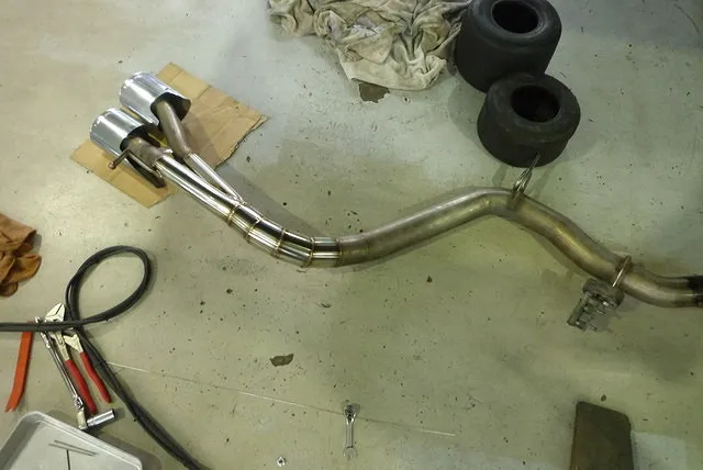 テールパイプは絶妙なひねりでリアバンパー内のスペースをうまく通り抜けるように作られているので