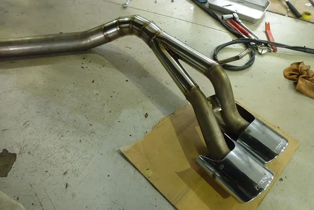 なのでリアタイコの直後でテールパイプをカットし、新規に1→2分岐パイプ部分を作っていく。