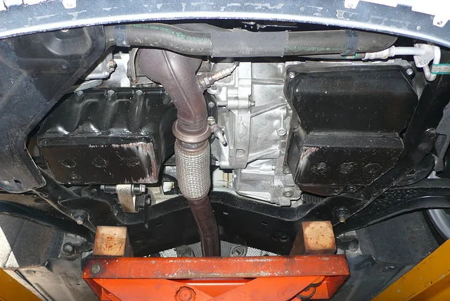 オートマミッションのオイルパンが、エンジン同様に低い位置にあるのが分かる。