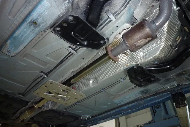 しかし写真で見てわかるように~、、エキゾーストマニホールド・触媒が純正のまま!