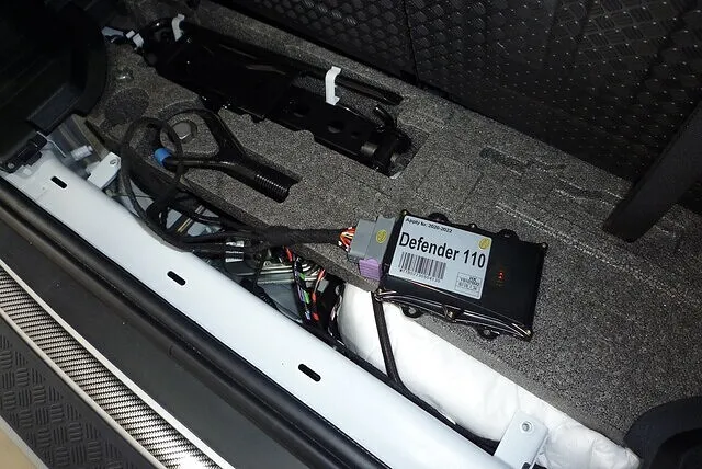 ディフェンダーの場合は、リア室内を分解しての配線作業となる