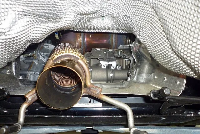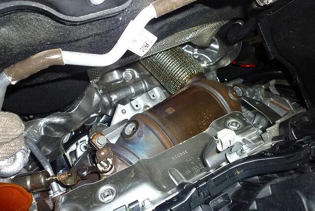 ダウンパイプの上にはいろいろな部品が設置されているためにたくさんの部品を外す必要が。
