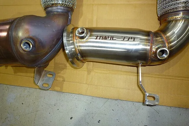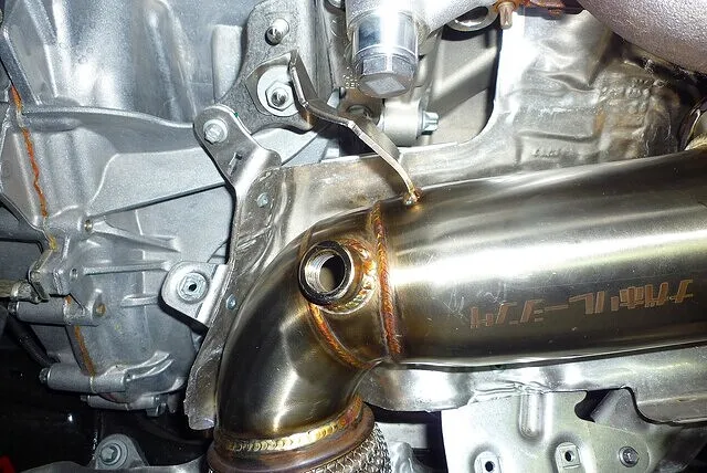 この手の中華ダウンパイプ、取り付けには大なり小なり加工がマストとなる。