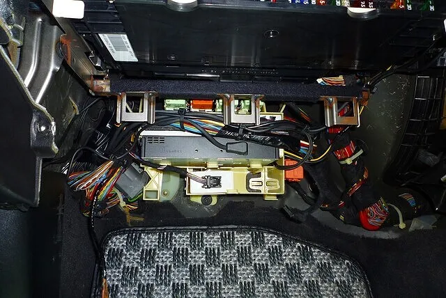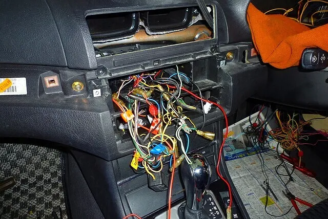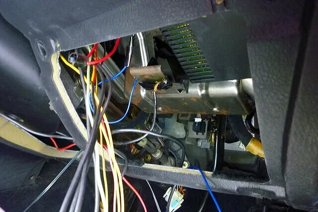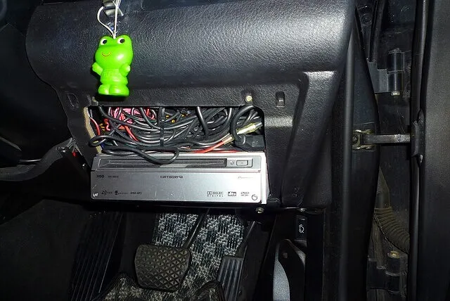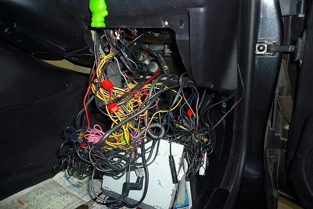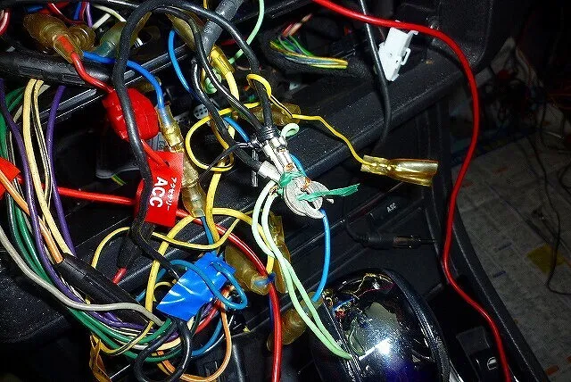 当時のナビは本体と別で各ユニットが接続されるためとにかく配線が多い。