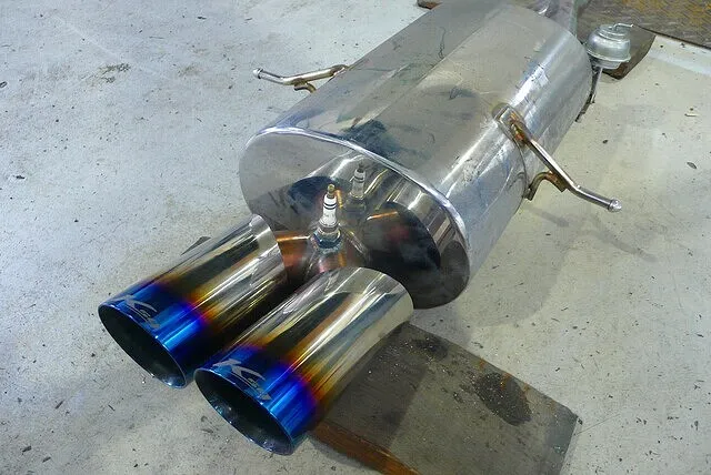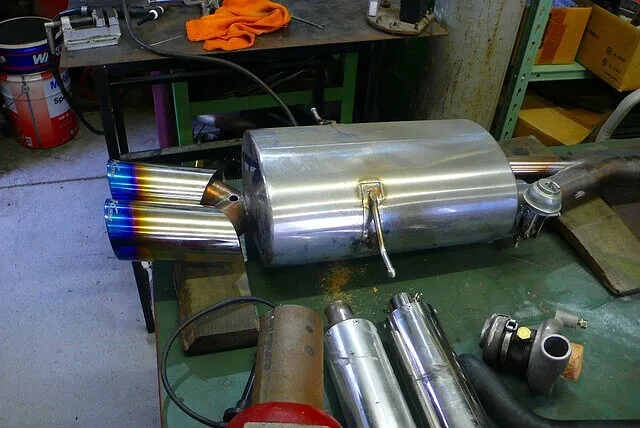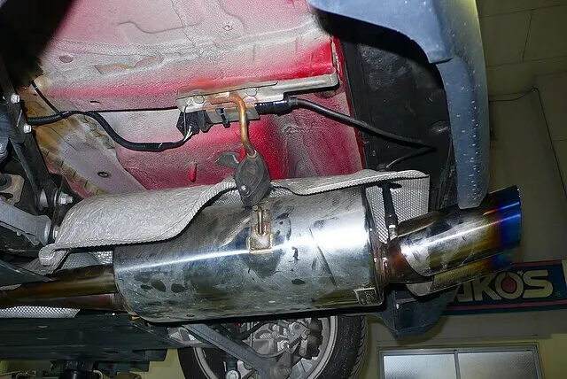マフラーもクライスジーク製に交換されており、このリアマフラーを取り外して加工することに。