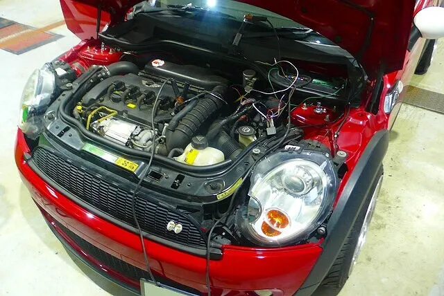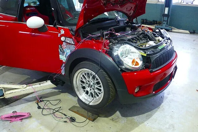 足まわりをはじめとして各部に手が入れられている状態のR56ミニクーパーS。