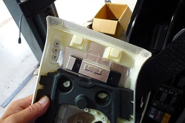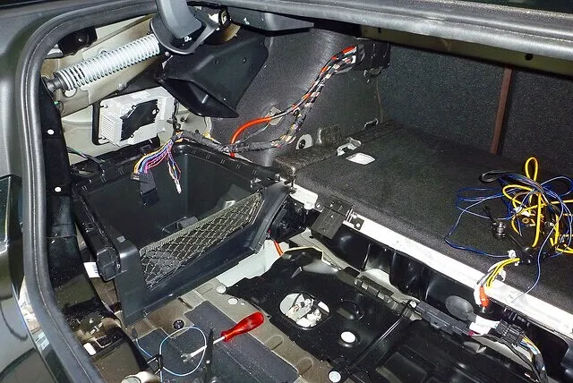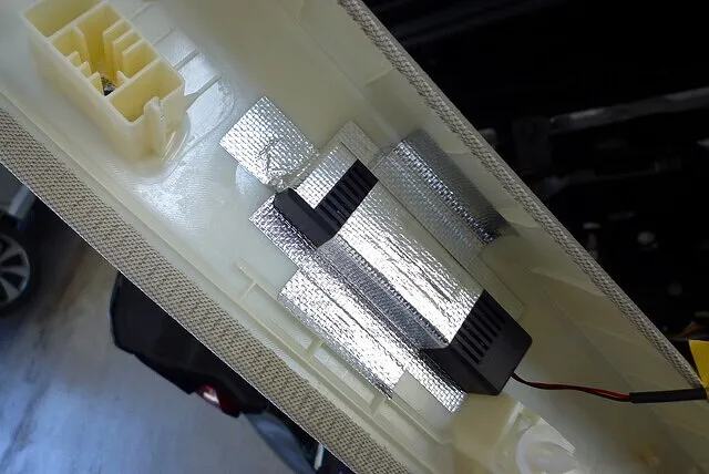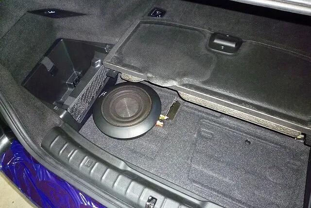 特殊な箱型スピーカーユニットを隠して取り付け、純正スピーカーからの音に全く新しい音を追加する。