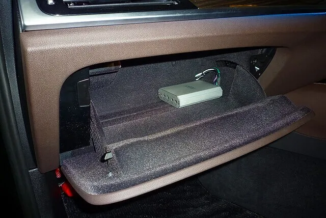 メインユニットとなる小型アンプはグローブボックス内に設置し、必要に応じて各調整が可能。