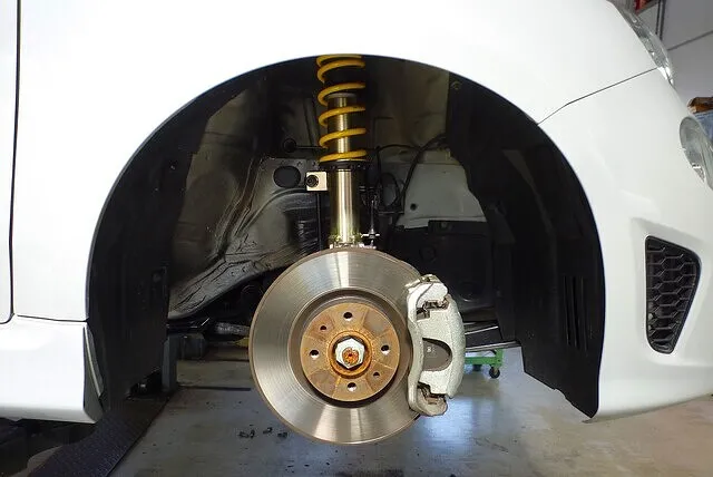 またアップライト側の取付ボルト穴は長穴加工されているので、キャンバー調整が可能に。
