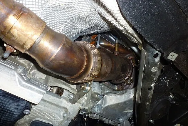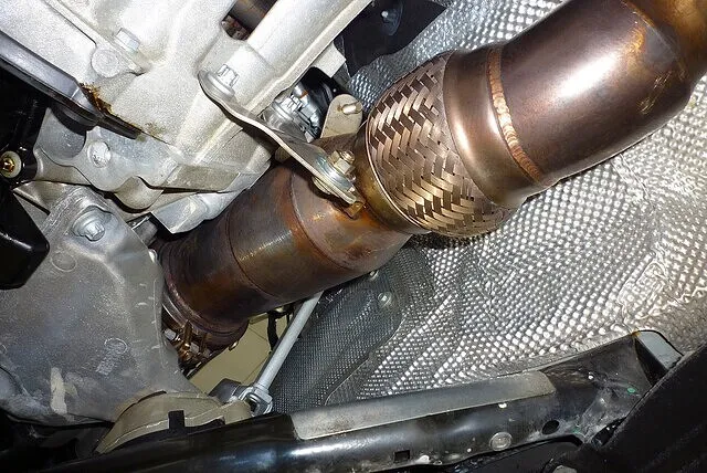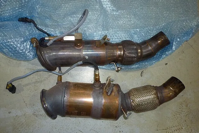 ダウンパイプはターボチャージャーに直接接続される、触媒付きの第1排気管。
