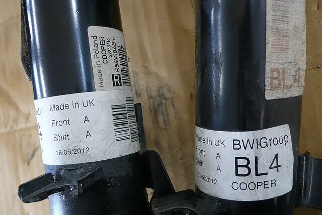 前後ともにBWI社製で、製造国はポーランド、、の上から重ね貼りされたラベルにはMade in UK。