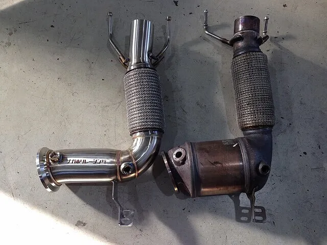 格安の社外ダウンパイプ、物によっては取り付けに大加工を要する場合があるので注意が必要。
