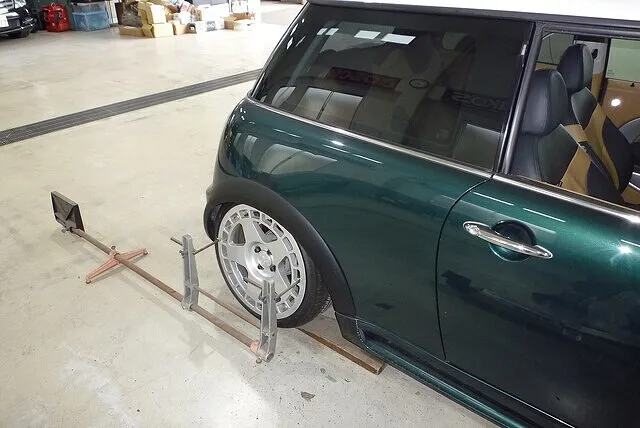 次はR53ミニでリア車高を大きく落とした車両で問題になってくる、アームとボディの干渉。