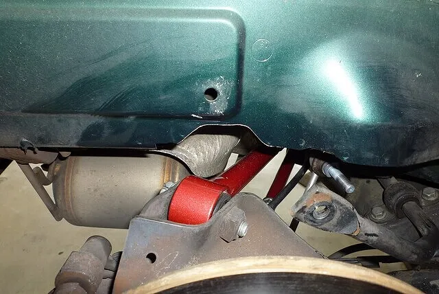 段差などでガツンとリアが沈み切った時に、この部分がヒットして激しい衝撃が車内に伝わる。