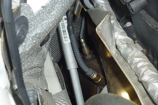 BMW縦置きエンジンのダウンパイプ交換作業はまだやりやすい。