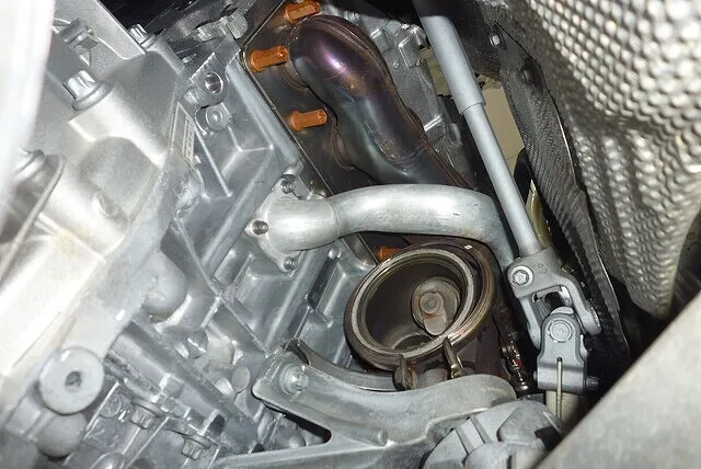 ターボエンジンのダウンパイプでは少しクリアランスに余裕があり、潰されている部分などは無い様子。