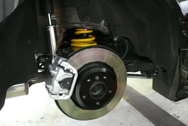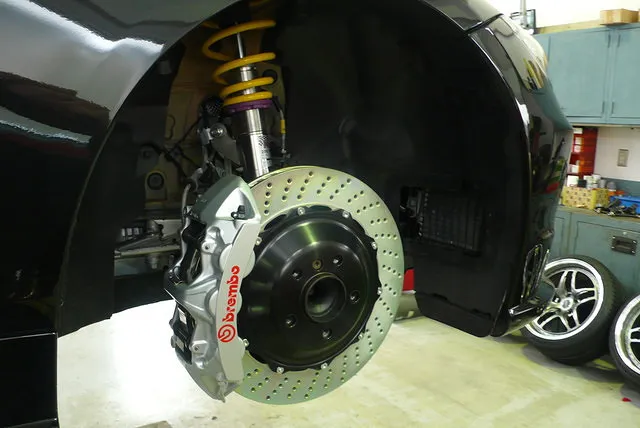 ブレンボブレーキキットのディスクローターはさらに大きいドリルドの2ピースローター。