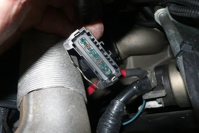 そのカプラーを外してみると、端子が緑色になっている。