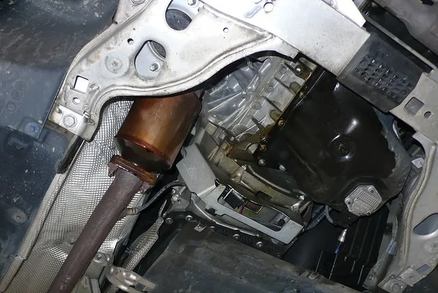 まずサブフレームを降ろし、スペースを確保してオイルパンを外します
