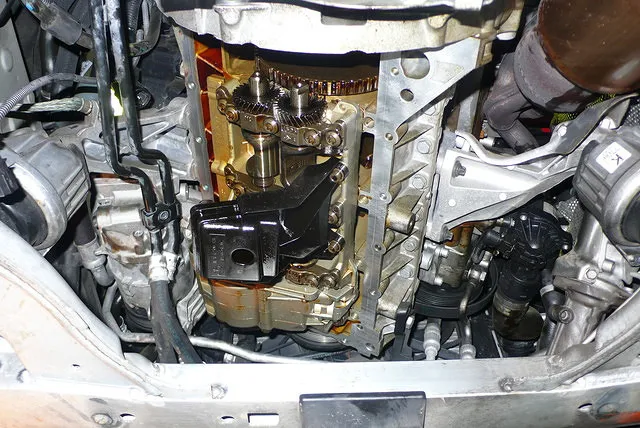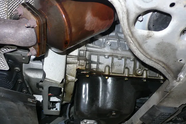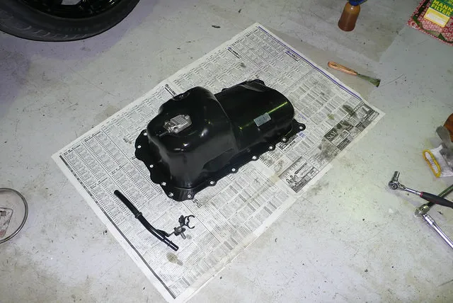 エンジン下端のオイルパン。ココのガスケットは交換するのが少し大変。