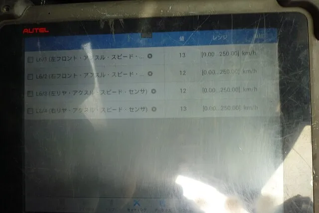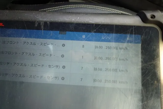 テスター診断の結果は、ホイールスピードセンサーの不具合。