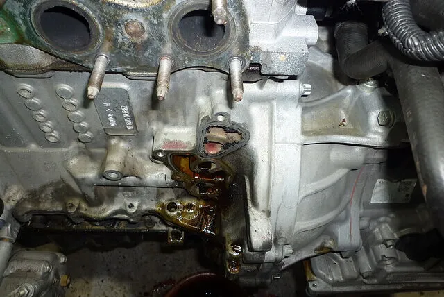 そのケースとエンジンブロックの接合部ガスケットが劣化し、オイルが良く漏れる。