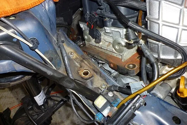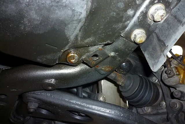 ボンネットを開けて簡単に点検できるのが、エンジン側に付くメインエンジンマウント。