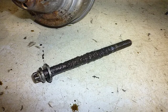 ネジをきれいにしたらこのようにネジ山が腐食してボロボロになっていた。