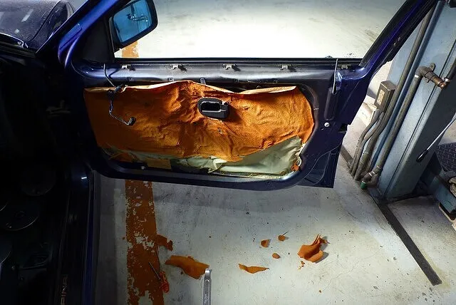 ドアパネルへの固定がリベットでなくボルトナットになっているので、一度は脱着されている様子。
