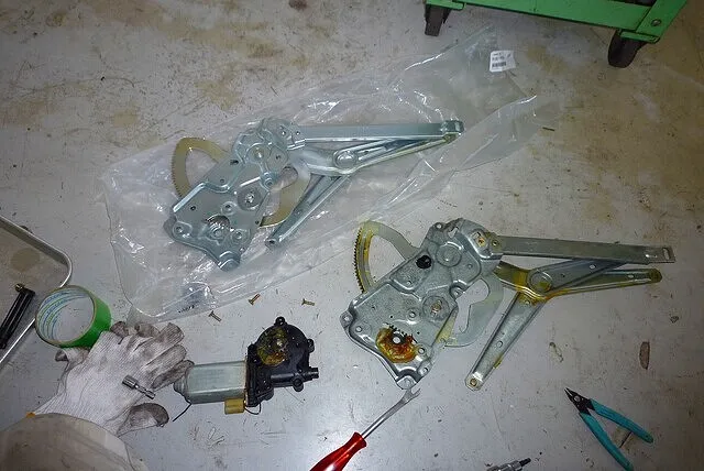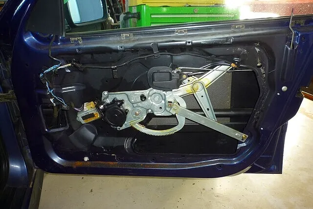 ドア内張・ドアインシュレーターを外すと見えるパワーウィンドウレギュレター。