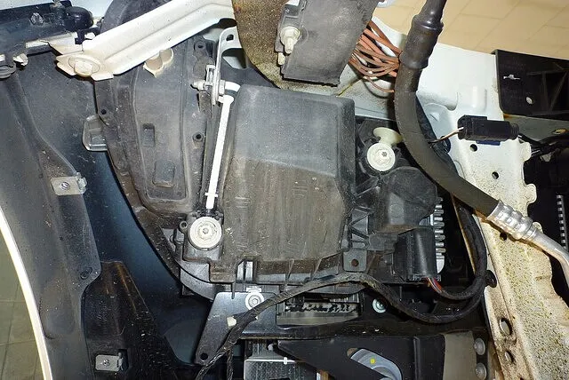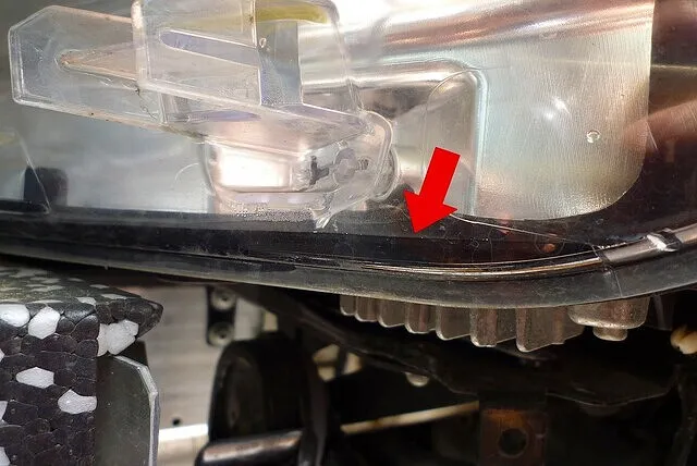 フロントバンパーを外すと、ヘッドライトの最下部を確認できる。