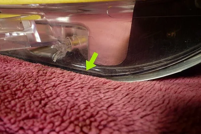 ヘッドライト底面をよく観察すると、まだ水分が残っている状態。