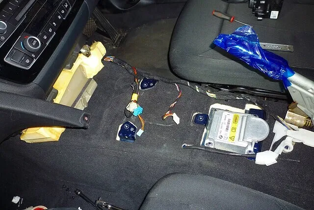 センターコンソールを取り外して、エアコンユニットの内部を点検。