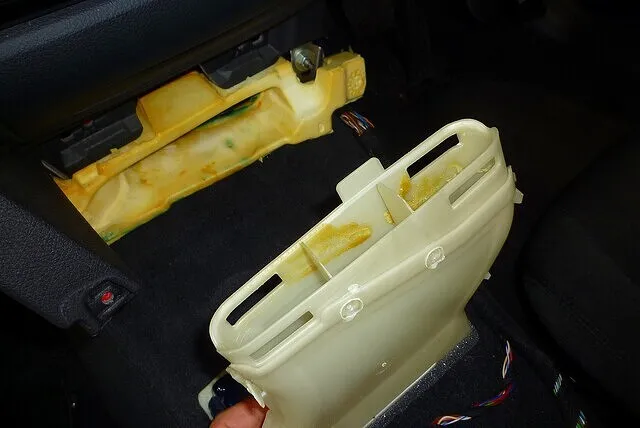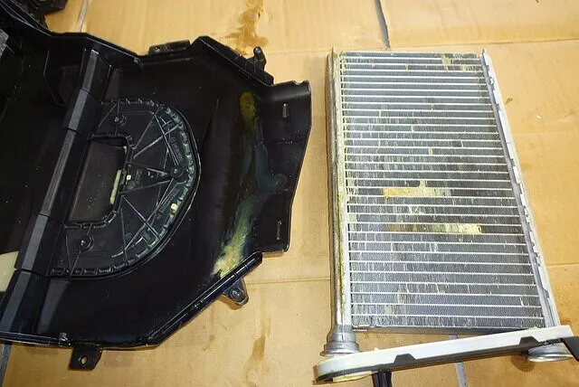 ヒーターコアの冷却水漏れは暖房の効きだけでなく最悪はエンジン破損にもつながる。