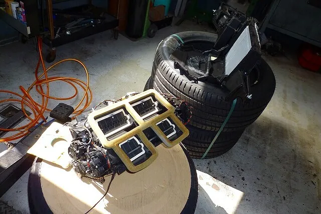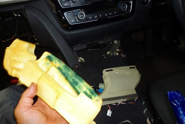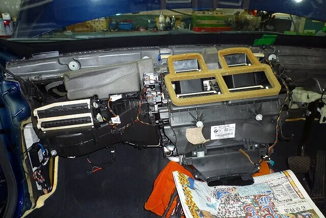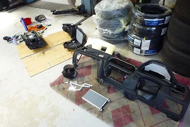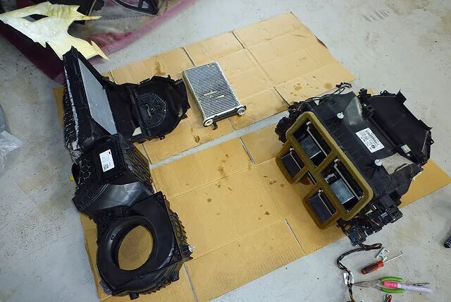 簡単に交換できないため、エアコンユニットを車外に取り出して分解が必要。