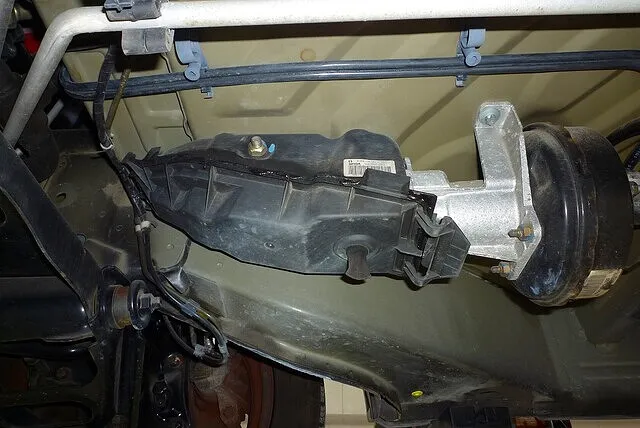 下面の大きなアンダーカバーを外すと、運転席の足元下の位置にブレーキユニットが。
