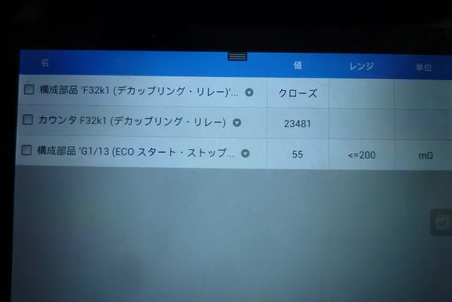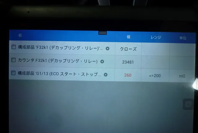 実測値のデータが見れないか項目を探してみると、、サブバッテリーの内部抵抗値が見れました。