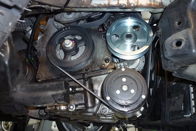 まずはファンベルトを取り外すところからなのですが、